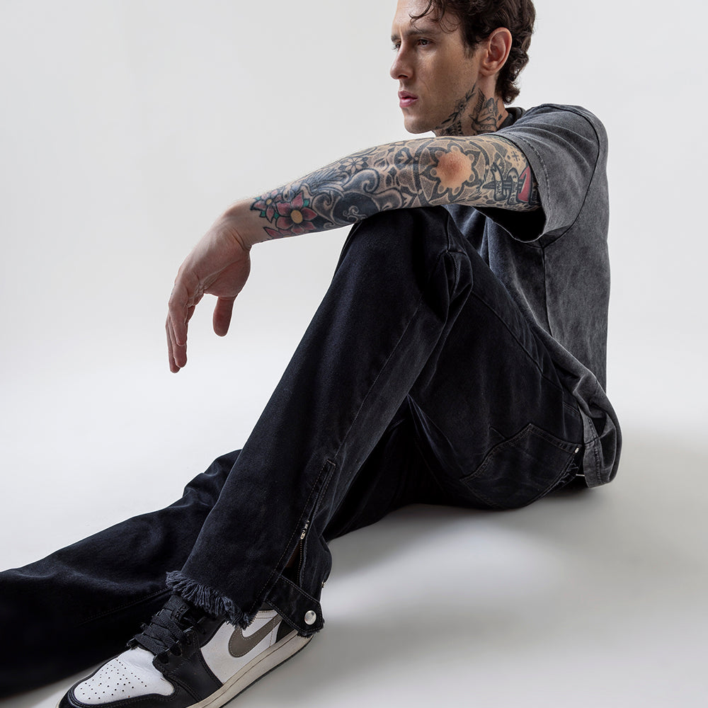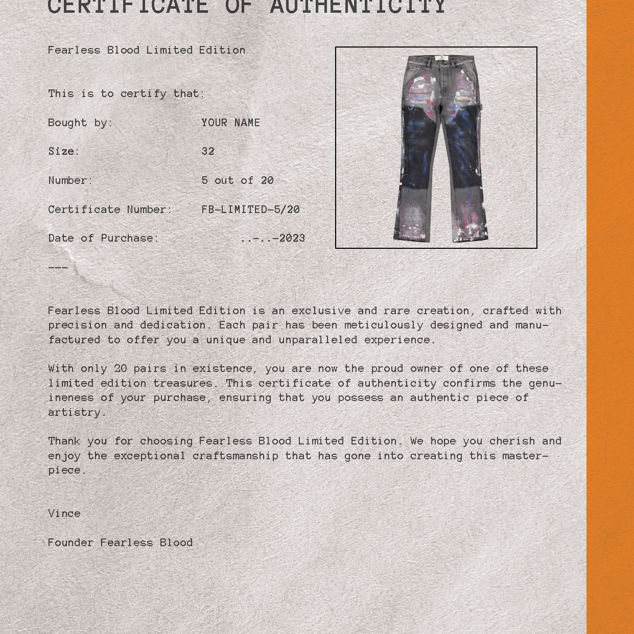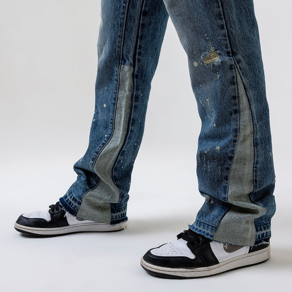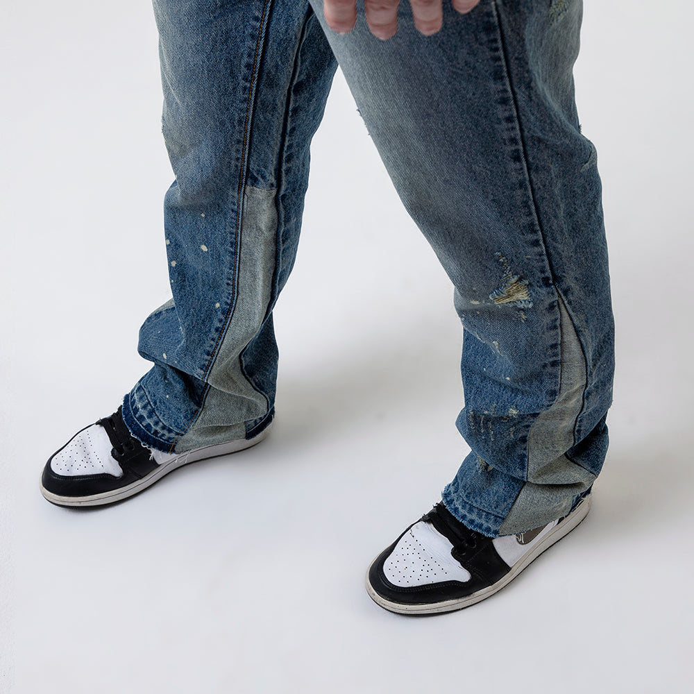 Introducing our Vintage Jeans collection, where classic meets contemporary. Crafted from 100% cotton heavy denims, our fitted jeans offer both comfort and durability. Embrace the edgy, destroyed look, adding a touch of rugged charm to your style. Discover timeless appeal and express your individuality with our vintage-inspired jeans.