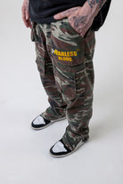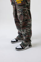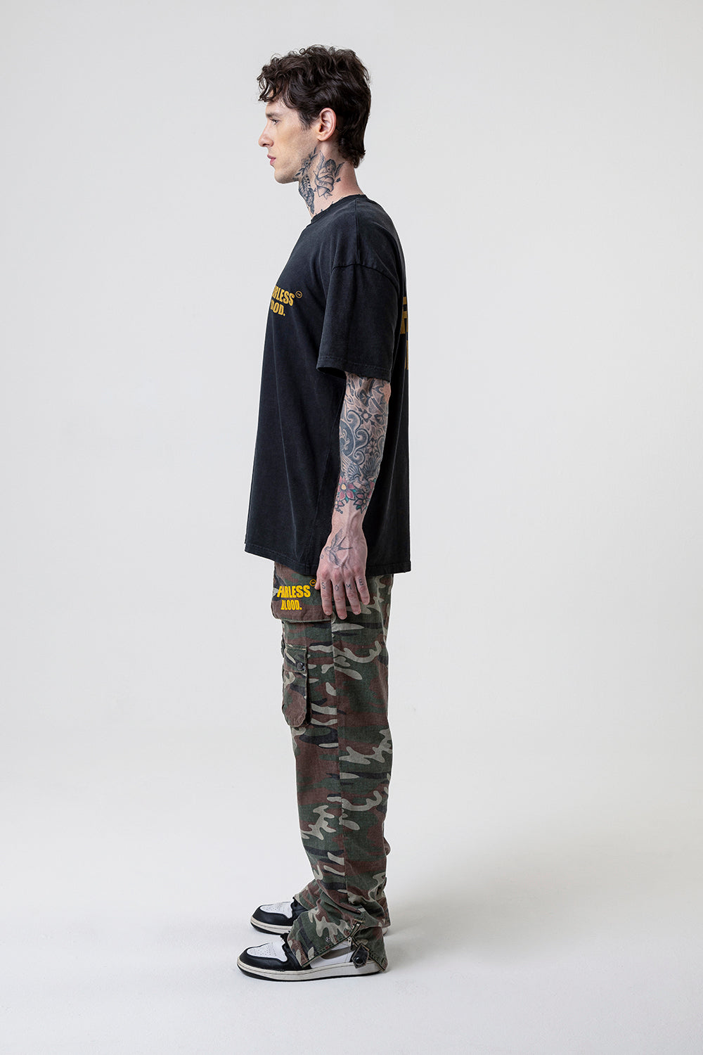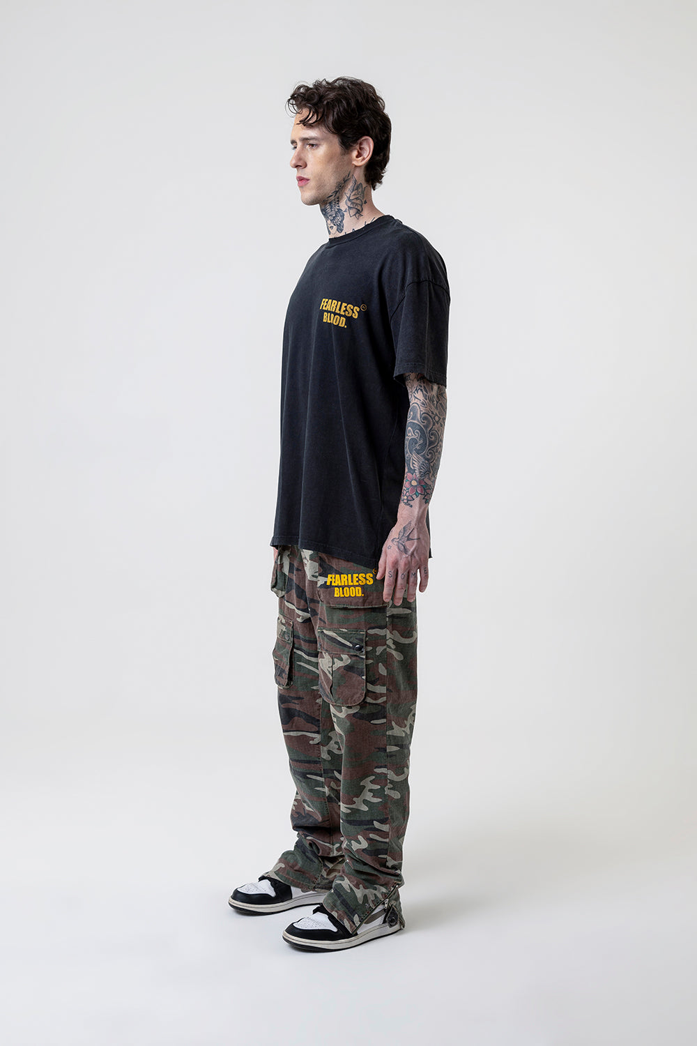 Experience vintage style with our Fb-cargo-pant! Crafted with a loose fit and woven fabric, these pants offer unmatched comfort. The heavy garment wash adds character to the vintage aesthetic. Featuring front balloon pockets and zippers on the underside of the leg, they combine fashion and functionality. Complete with an eye-catching FB print, these pants are a must-have for your wardrobe. Upgrade your style effortlessly with our Fb-cargo-pant and discover a new level of fashion-forward comfort.