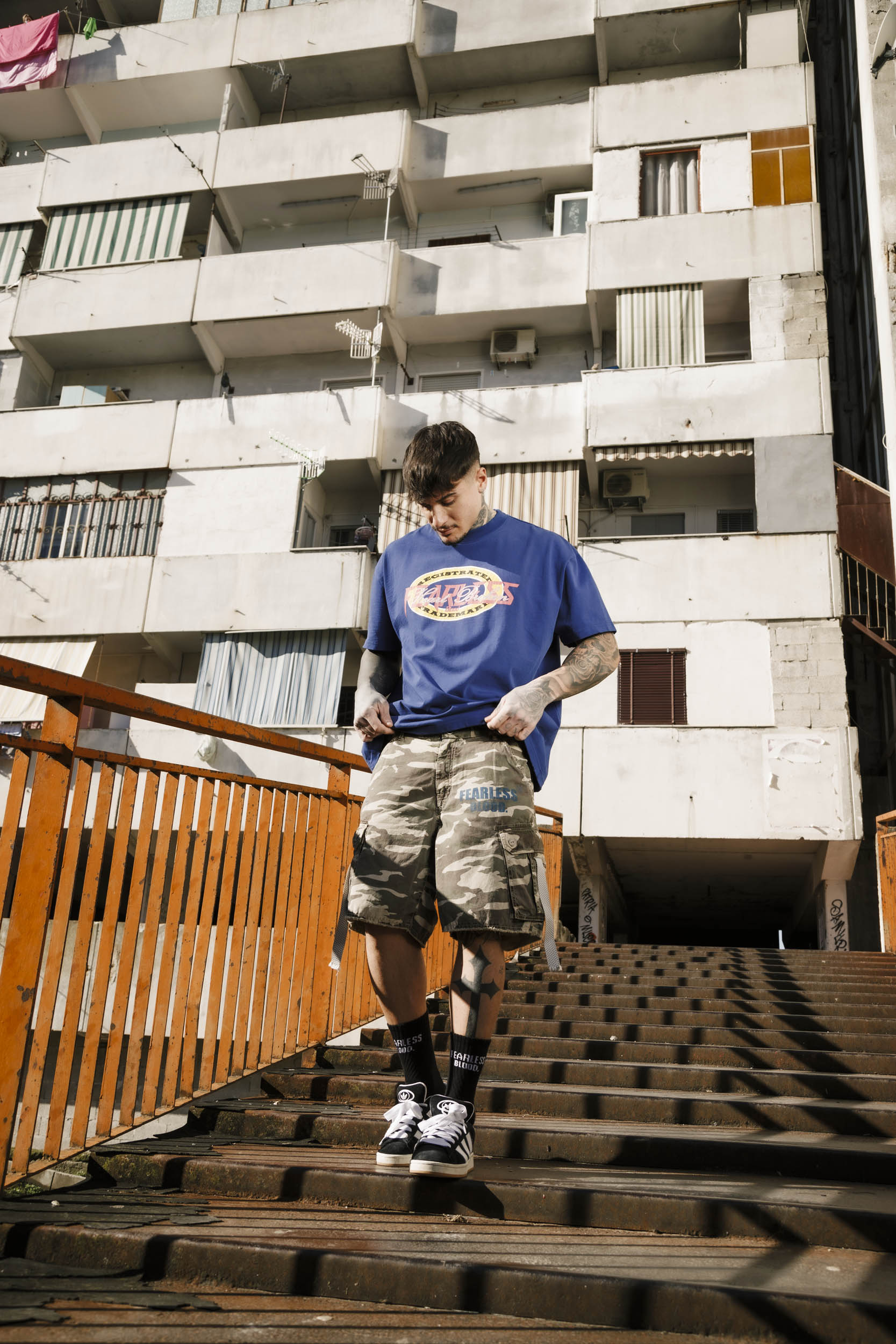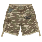 Explore urban vibes with Fearless Blood's FB-CARGO-SHORT. In cool camouflage, these unisex cargo shorts are crafted from 100% cotton twill for durability. With a streetwear edge, they feature a black FB print and denim details, perfect for the city scene. At 250 GSM, they offer comfort and style, with removable canvas tapes adding extra flair. Step up your streetstyle game with these standout shorts.
