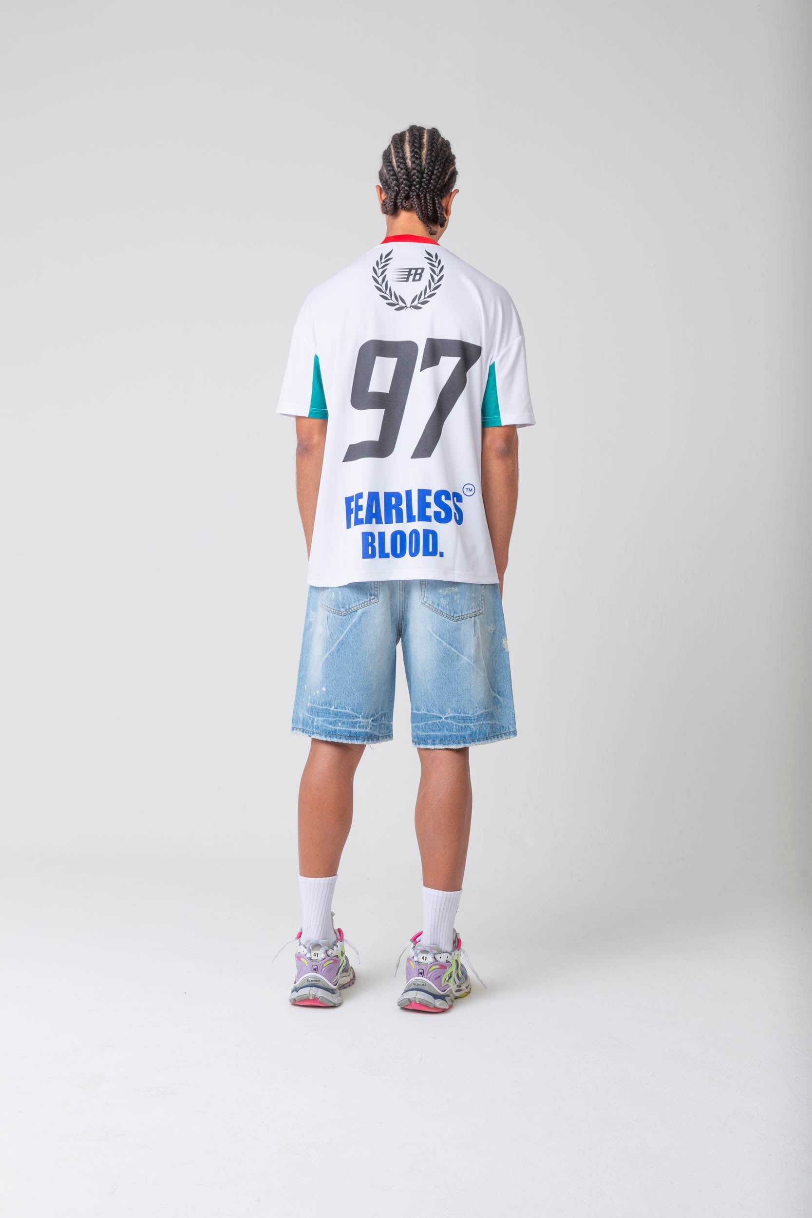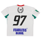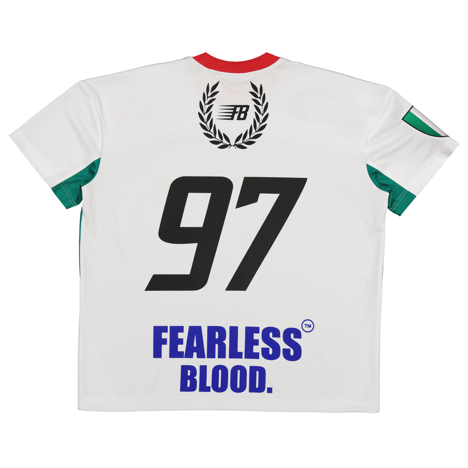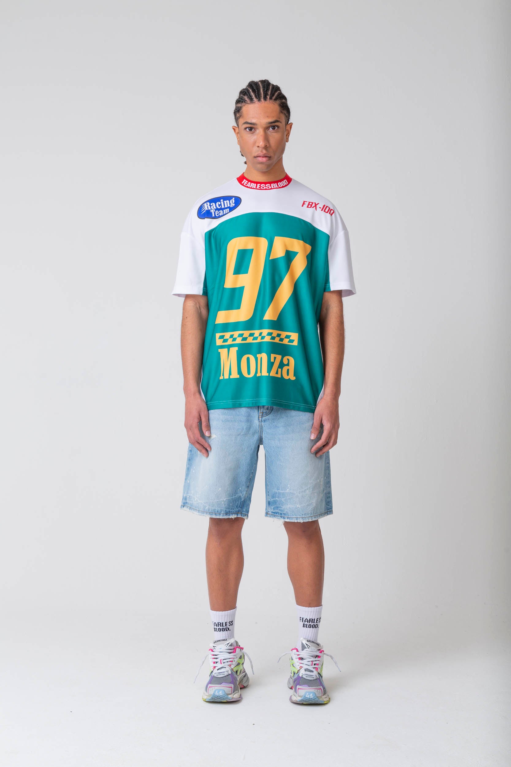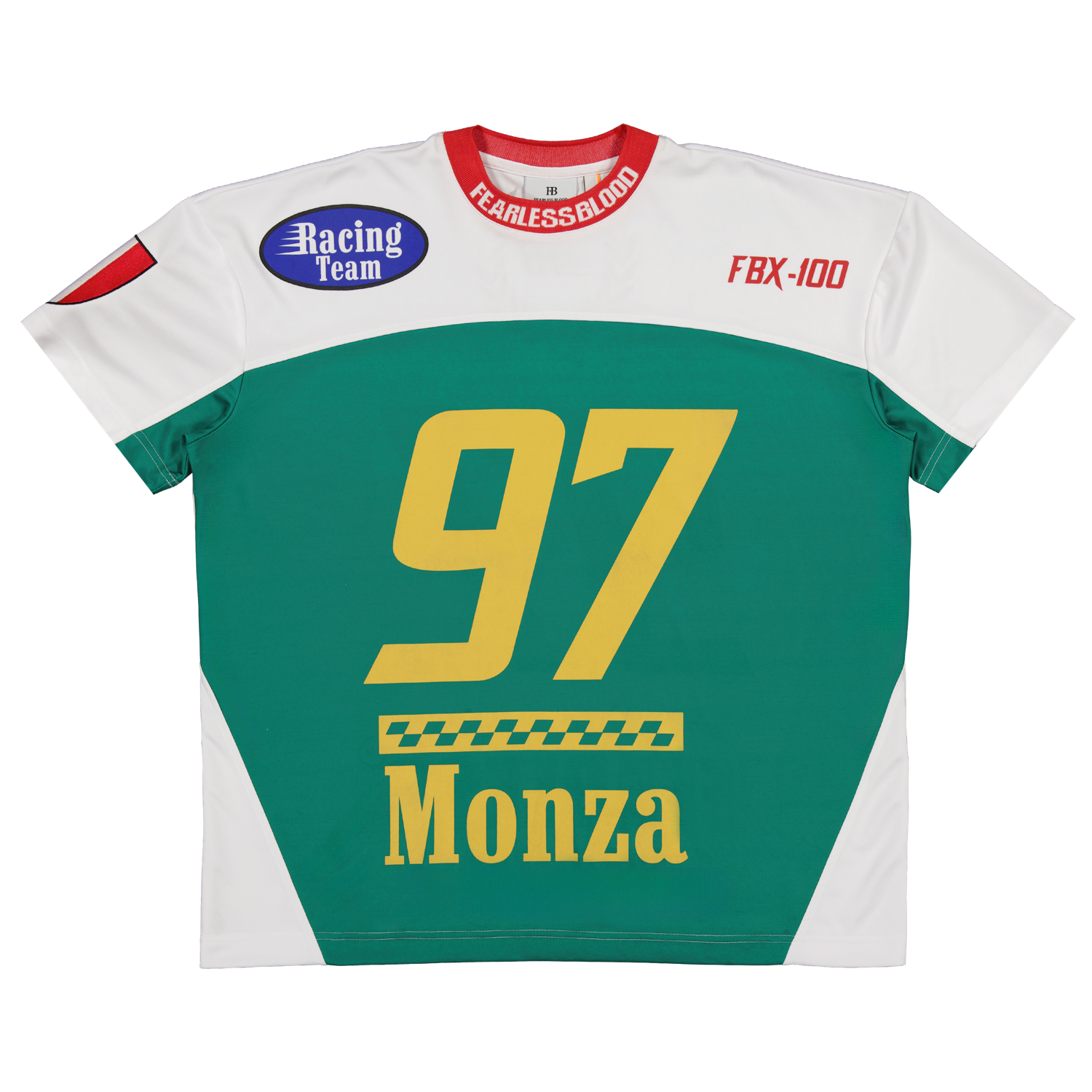 Unleash your racing spirit with Fearless Blood's FB-Racing tee. Boxy fit, 250 GSM polyester, vibrant green, striking racing artworks, branded neck ribbing, raw appeal. A streetwear essential that embodies urban race aesthetics and individuality. Style and comfort in one bold expression of speed.