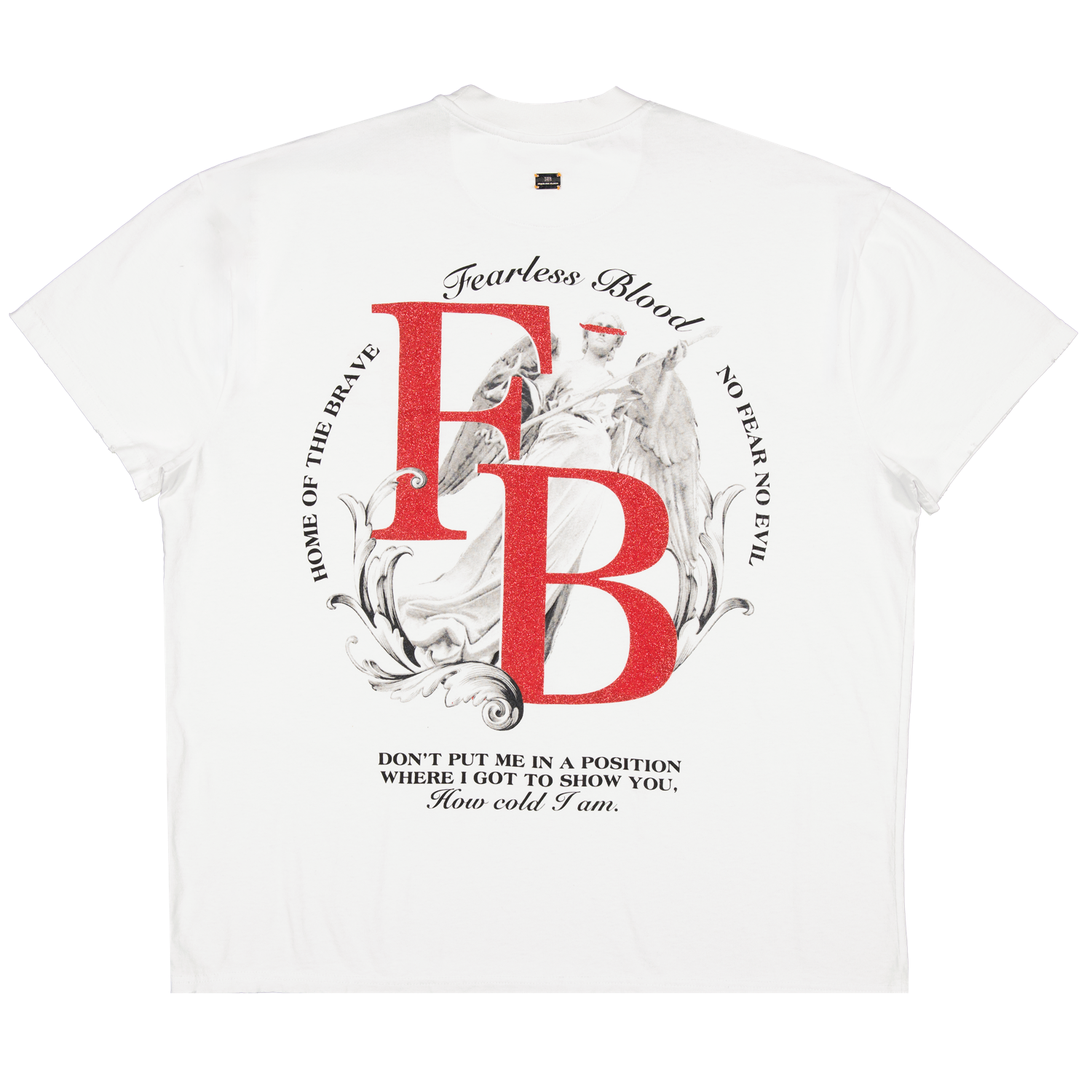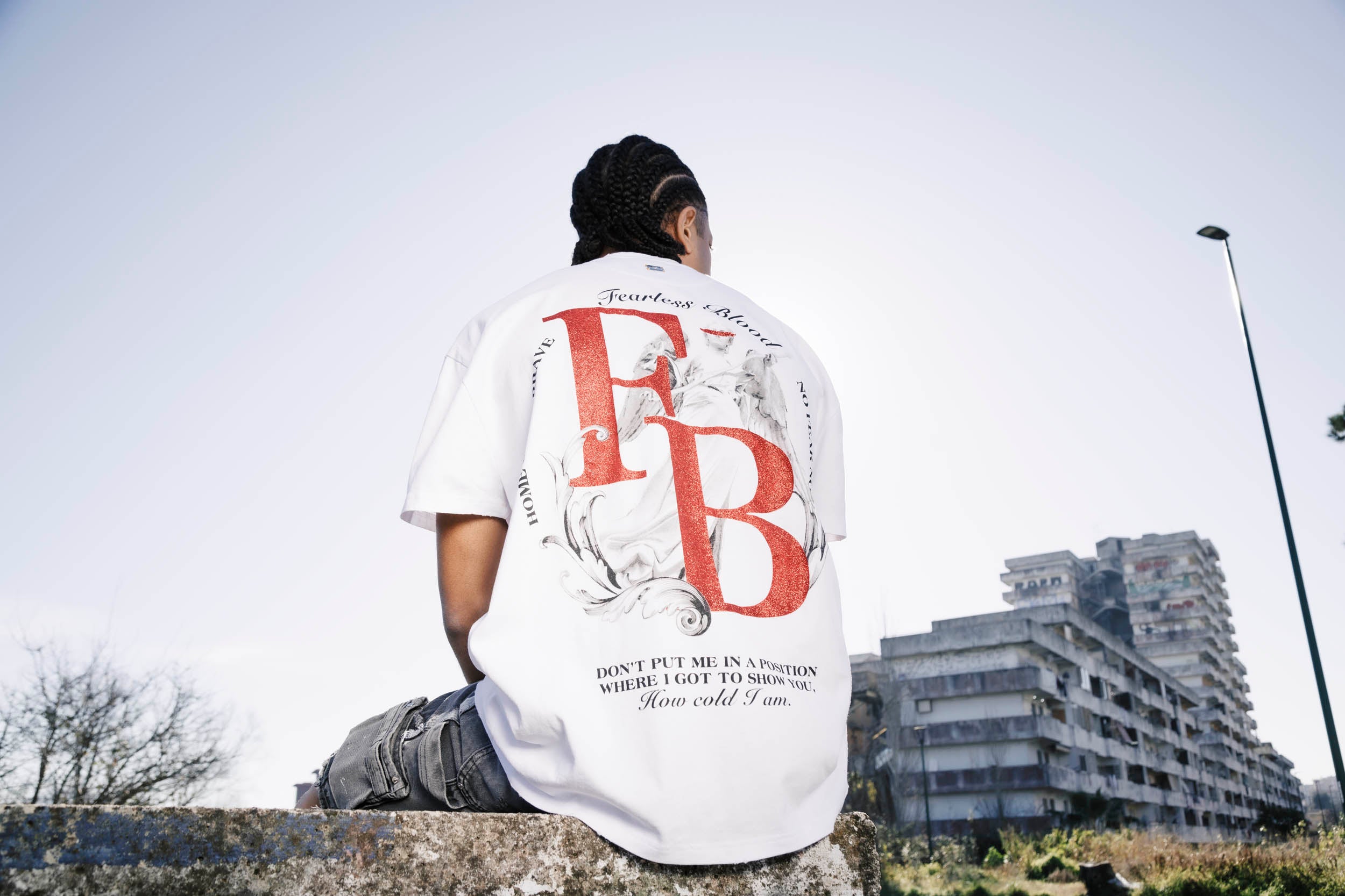 Fearless Blood’s FB-tee-08 redefines streetwear in real white jersey fabric. Unisex in fit and weighing 250 GSM, this tee boasts a vintage wash for an urban edge. Featuring captivating angelic artwork and intricate red glitter prints, it’s a bold statement in streetstyle fashion. Dive into the grit and glamour of the streets with Fearless Blood’s FB-tee-08, where the fusion of comfort, style, and unique detailing brings an unmistakable edge to your wardrobe.