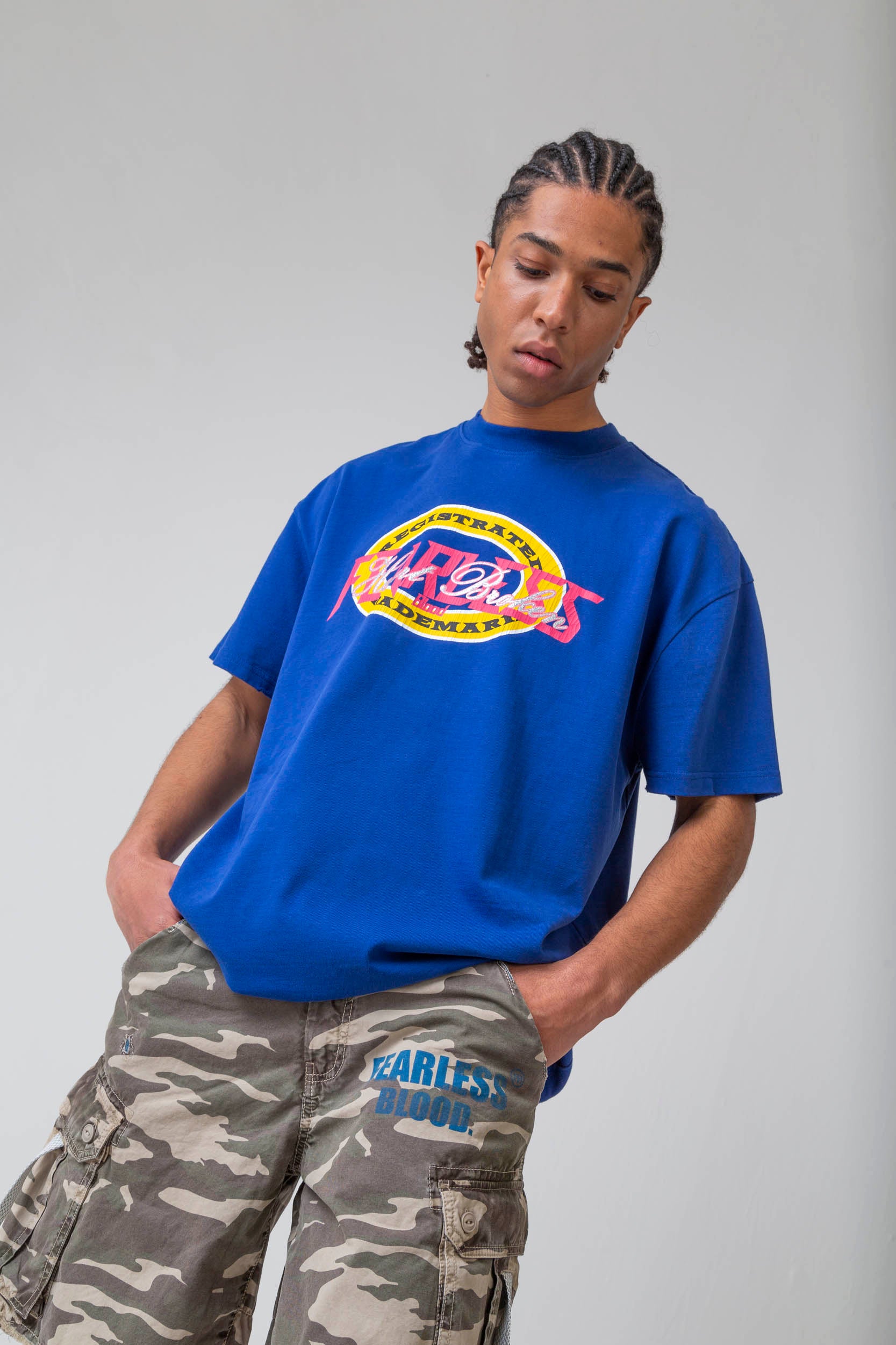 Introducing Fearless Blood’s Vintage T-shirt collection, crafted with passion and attention to detail. Our 100% cotton tees feature a carefully executed destroyed wash, enhancing their vintage charm. With printed text and in- tentional damage at the ribbing and bottom, these 250g T-shirts exude a rugged yet stylish appeal. Experience the fearless spirit in every thread.