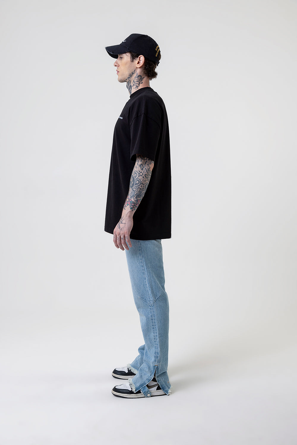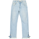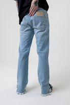 Our Rugged Wash Denim Pants in blue denim. With a straight fit and made from 100% cotton, these jeans pants offer both style and comfort. The rugged wash adds a vintage touch, while the zipper underside of the leg adds functionality. Elevate your denim game with this versatile wardrobe staple