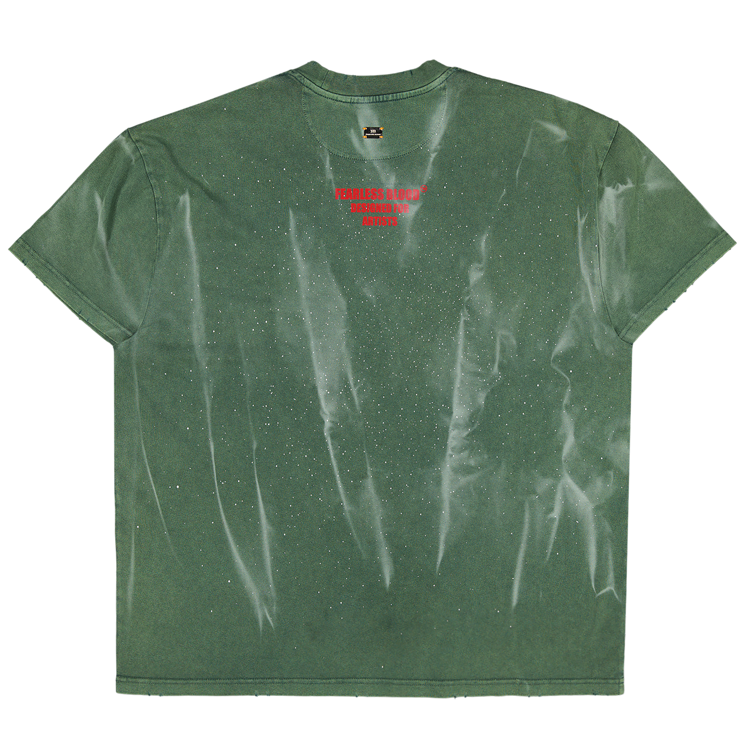 Infuse your streetwear collection with Fearless Blood’s FB-TEE-11. In a striking green hue, this tee exudes urban flair. Crafted from 100% cotton with a weight of 250 grams, it promises both comfort and durability. The garment dye, coupled with a distressed spray, adds a unique edge, while the unifit ensures a versatile silhouette. Featuring a rib-off pocket with print detailing, it’s a statement piece for the fashion-forward. Plus,