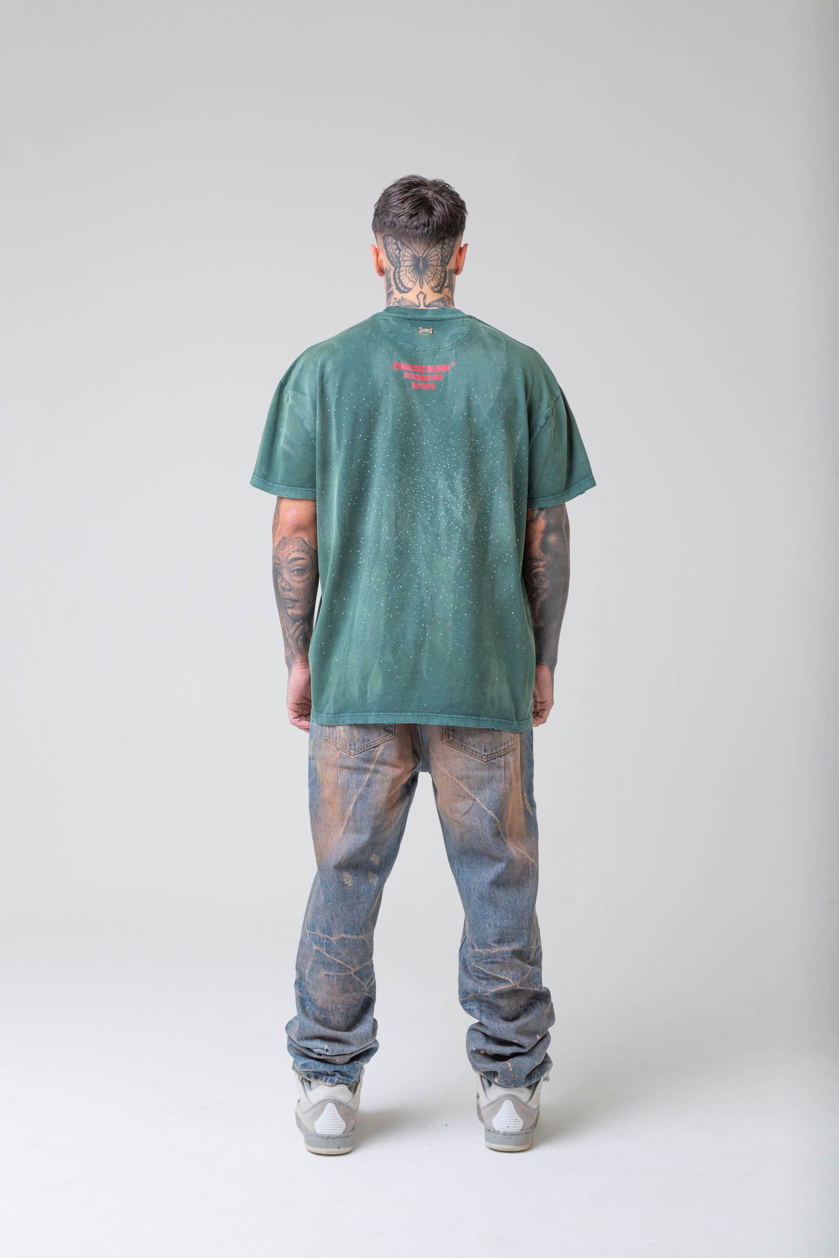 this tee is paired with a 14 OZ. distressed wash with tinting, enhancing its rugged appeal. Upgrade your street style effortlessly with Fearless Blood’s FB-TEE-11.