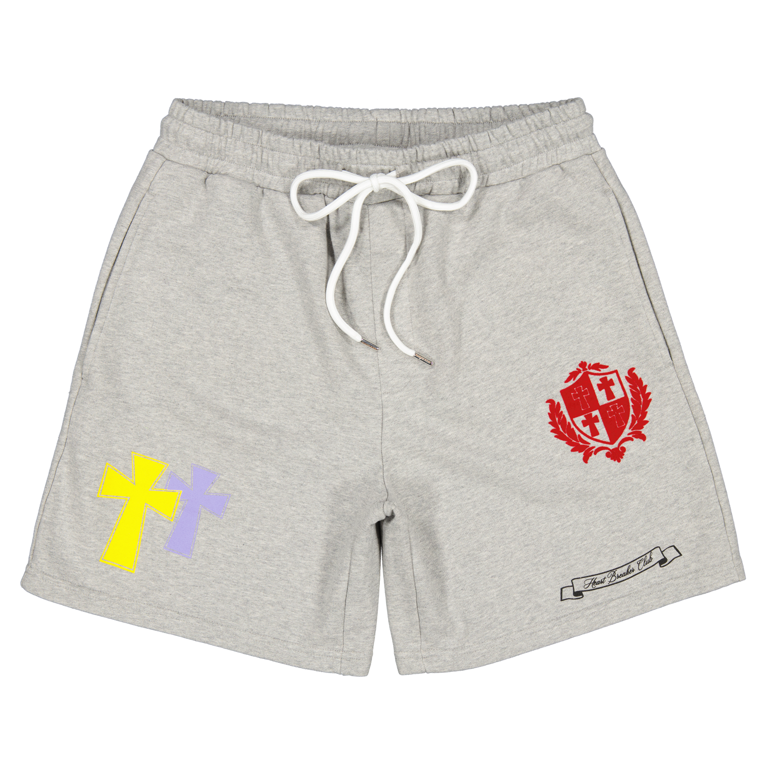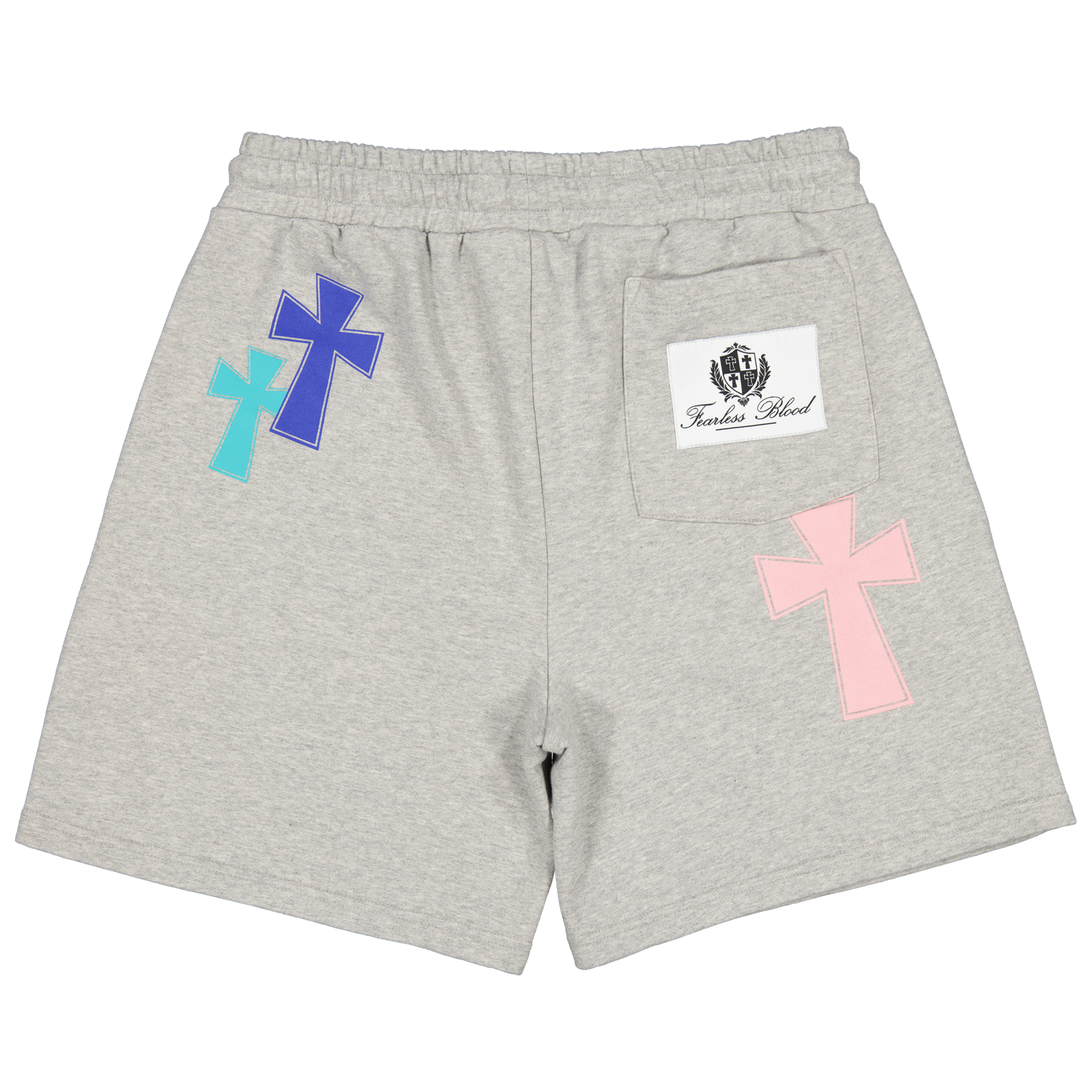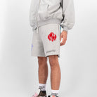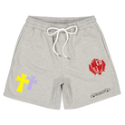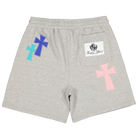 Heavyweight 380 GSM cotton meets streetwear in these grey melee vintage sweat shorts. Designed for a unisex fit, they offer ultimate comfort with a garment-washed finish for a worn-in feel. Cross artworks give a raw edge, while the woven label at the pocket adds subtle detail. Whether paired with a tee or hoodie, these shorts bring effortless style to any look. A go-to piece for those who live and breathe the streets.